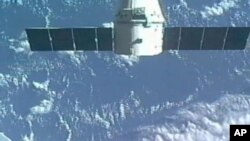 國際太空站上的宇航員以長機械臂﹐讓飛龍號脫離國際太空站。無人駕駛的太空船飛龍號﹐於星期四中午降落在加州西南方的太平洋水面上。