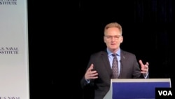 美國代理海軍部長莫德利2019年12月5日出席一場海軍研討會(美國之音黎堡拍攝)